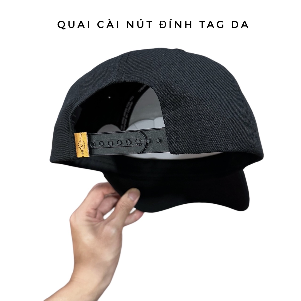 Nón lưỡi trai fom vuông phiên bản cao cấp với nâng cấp về vải và tag da màu vàng điểm nhấn ở khoá cài nút.